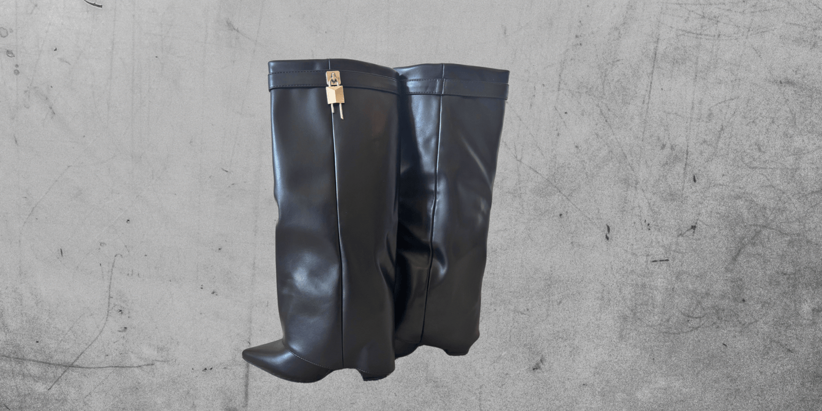 Hohe Damenstiefel aus weichem braunem Wildleder mit spitzer Zehenpartie und elegantem Umschlag. Perfekt für einen stilvollen und modernen Look.