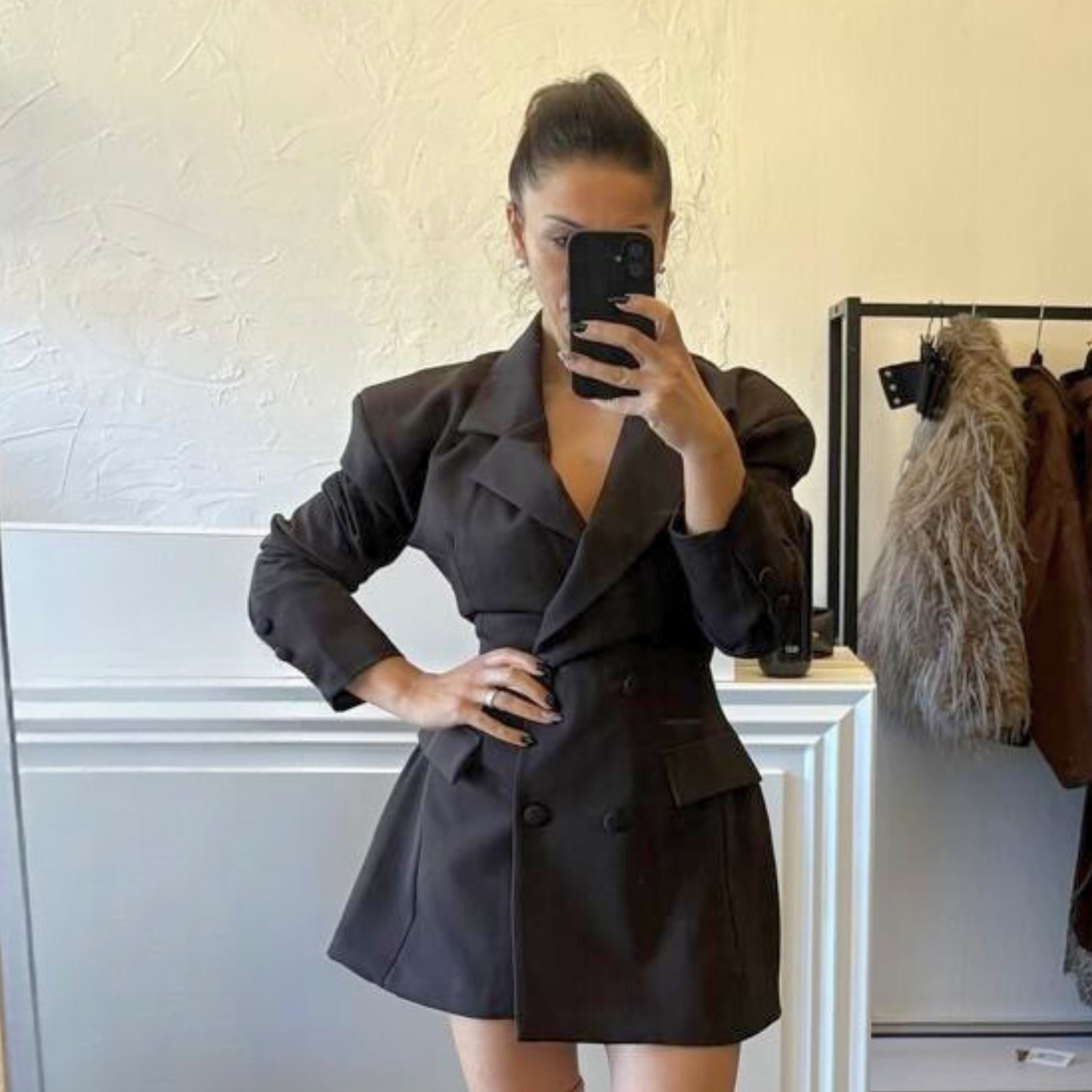 Realizzato con linee pulite e design minimal, è ideale per creare outfit business, formali o casual chic. La struttura definita sulle spalle e il punto vita evidenziato donano slancio e armonia alla figura, rendendolo perfetto sia per l’ufficio che per eventi serali.