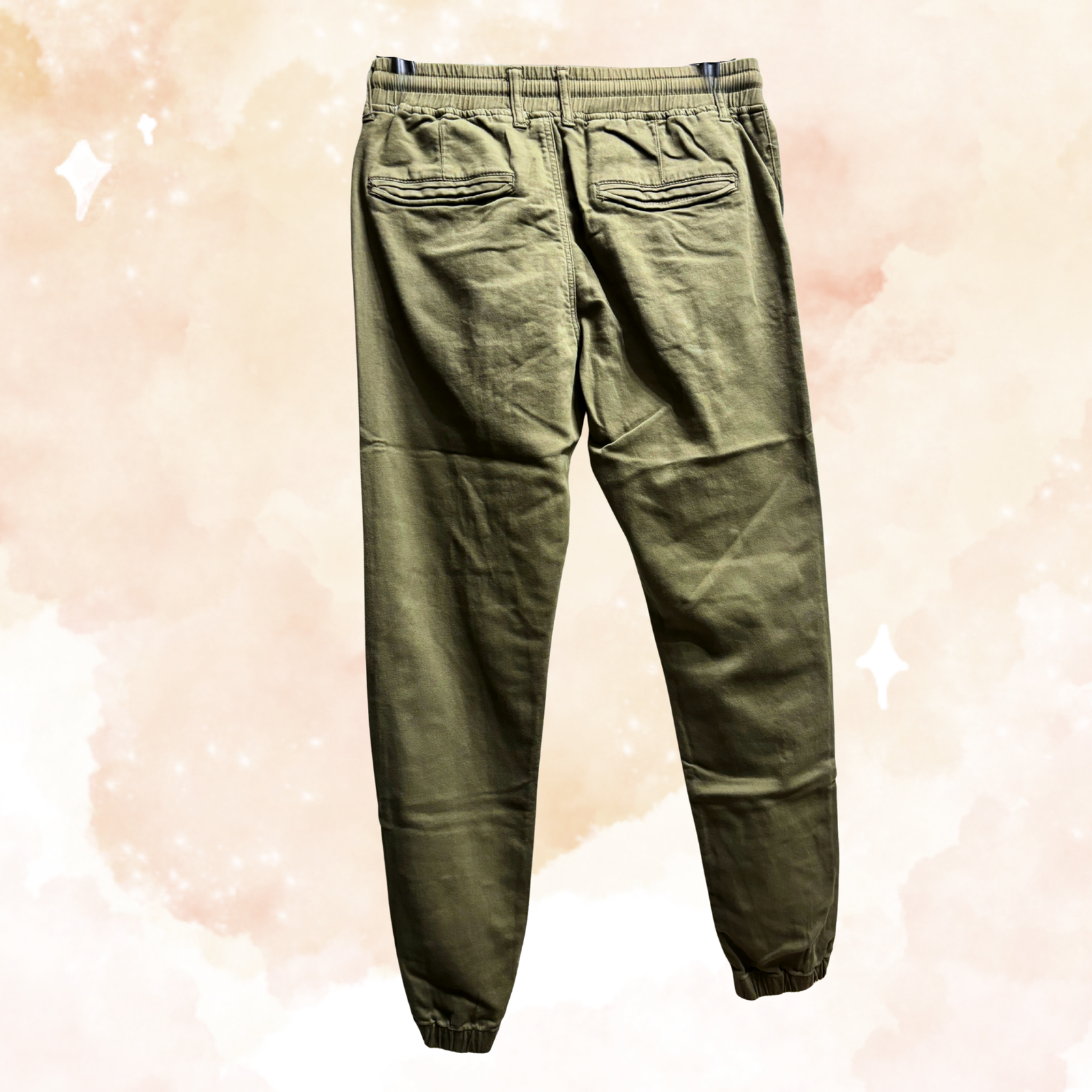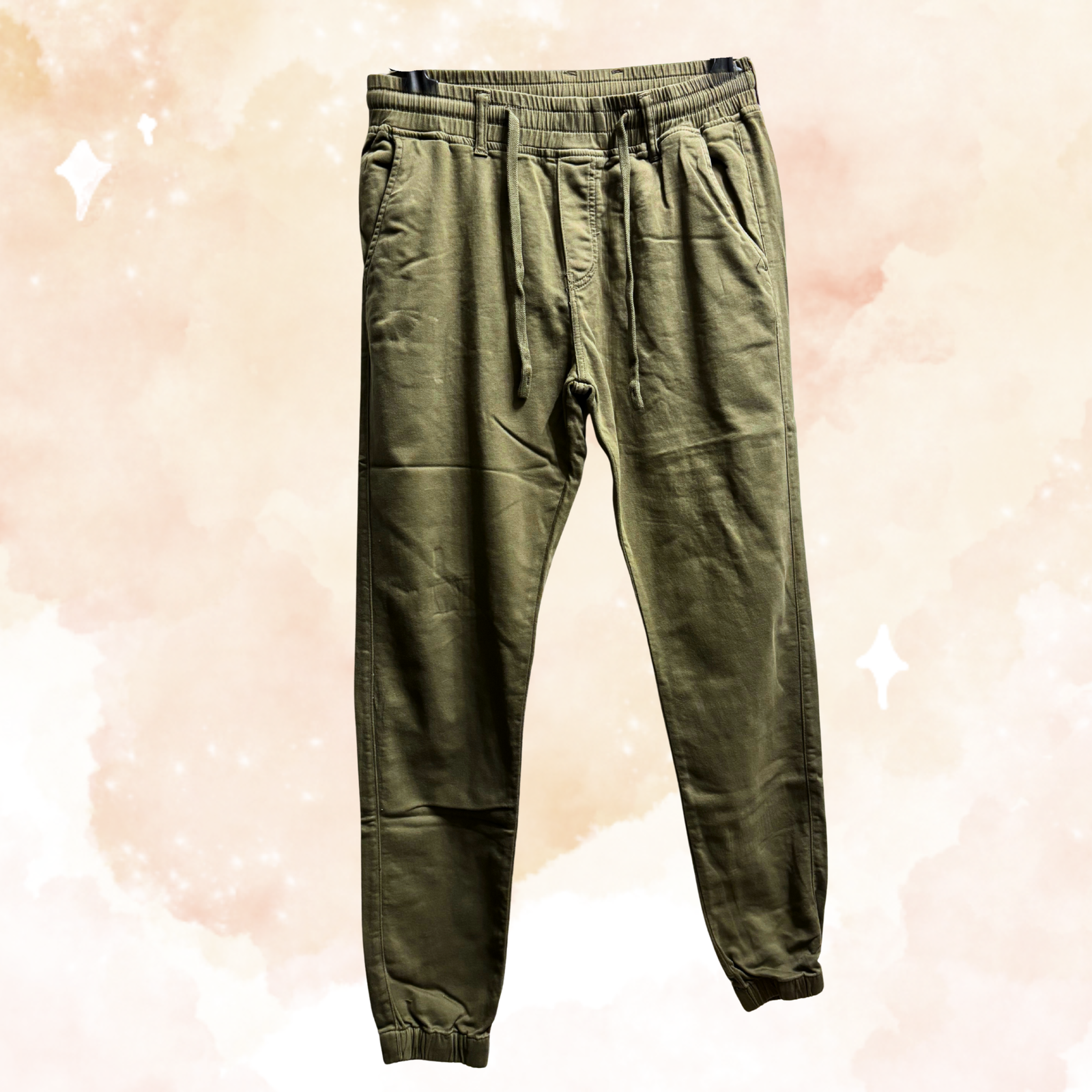 Pantaloni jogger verde oliva con vita elasticizzata e coulisse, vestibilità comoda e design moderno.